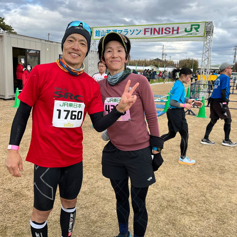 (淳)それまでずっと2人でやっていたんですけど、今よりもう少し上手くなりたいなと、技術向上のために練習会に参加したことがきっかけでした。たまたまSNSで久保埜一輝コーチが館山で日帰り練習会をやるというのを知り、行ってみることにしたんです。初めはコミュニティに入ることを目的に行ってなかったんですけど、そのときみんなで練習することの楽しさを知って、そこから練習会や合宿にも積極的に参加するようになりました。(綾子)それまでは我流でやっていたので、学ぶということをしていなかったんです。スイムもランも、特にバイクはよく分からないのに自分たちだけでやっていて。だから練習会やイベントへの参加を通じて、トライアスロンを体系的に学ぶことが面白くなってきました。もう少しペダルをよく漕げるようになりたい、もう少し楽に走れるようになりたいって、自分を向上させたいという気持ちで参加していたら、仲間にも会えるし、新しい仲間と出会えるし、それも楽しくなってきていろいろ参加するようになりました。(淳)レース自体は苦しいじゃないですか。でもレースに挑むまでの過程があって、一緒に切磋琢磨できる仲間がいるってこんなに心強いのかと思いましたね。レース後も互いの頑張りを称え合ったり、あのとき暑かったとか、あそこがきつかったとか、みんなで共有できるのも嬉しいんです。コミュニティ目的ではなかったけど、今ではその魅力に完全にハマっています。どの練習会や合宿に行っても、みんな受け入れてくれますしね。ウェルカムな感じでよそ者扱いされないし、気さくな人が多いから、安心して入っていけるんです。トライアスロンをやっているというだけで、すごく距離感が近くなりますよね。(綾子)マラソンや水泳でも仲間はできますけど、こんなに広がっていくのはトライアスロン特有なのかなと思いますね。トライアスロンを始めてからびっくりする程、人との縁がどんどん広がっていきました。もちろんそこに自分の成長や学びはあるんですけど、タイムとかそういうことだけではなくて、人との出会いや、コミュニティの中にいる楽しさも教えてもらいました。