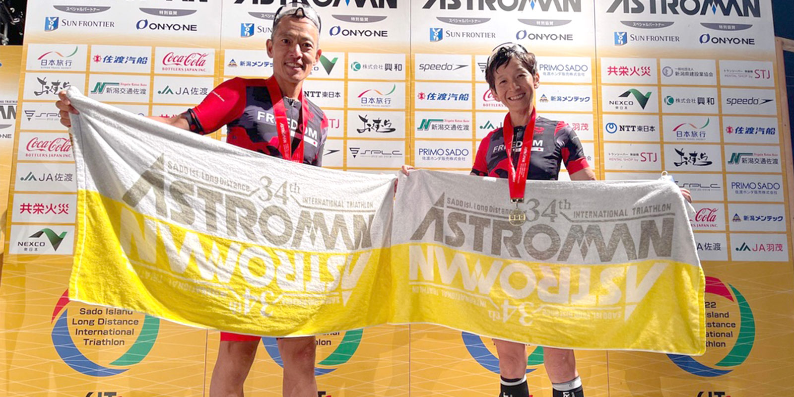 (淳)一年のうちに2つのロングトライアスロンレースにチャレンジしたのは昨年が初めてでしたね。佐渡トライアスロンはコロナ禍による中止を挟みますが、2018年から3回連続Aタイプ*を夫婦で完走しています。そして昨年(2023年)は、それに加え灼熱の皆生トライアスロンも完走しました。昨年から久保埜一輝コーチはじめ、トライアスロンコーチの指導を受けながらレースに挑んだんですけど、コーチや一緒に指導を受けた仲間たちの存在の大きさを改めて実感したシーズンになりましたね。ここ数年はコロナの影響によりレースの中止が続いたこともあり、私自身もなかなかモチベーションが上がらなかったり、目標を見失いそうになりました。でもこの時期に参加していたトライアスロン練習会や合宿などで多くの方々と出会い、そして互いに刺激し合うことがチャレンジへの大きな原動力になったと思います。実は私は昨年のシーズン序盤の4月にバイクで落車して、6月に手術をしたんです。初めはなんともないと思っていたんですけど、徐々におかしいなという症状が出てきました。ひどい肩凝りと、目の奥が痛いような眼精疲労のような違和感。トレッドミルで走っていたら何もないのにつまずくようになったり、無意識に左側に寄って行ってぶつかりそうになったり。周りの人に病院に行った方がいいと言われて行ってみたら即手術。手術した翌月の皆生にはなんとか出られましたが、改めて、妻をはじめコーチや仲間の存在を大きく感じる一年でした。