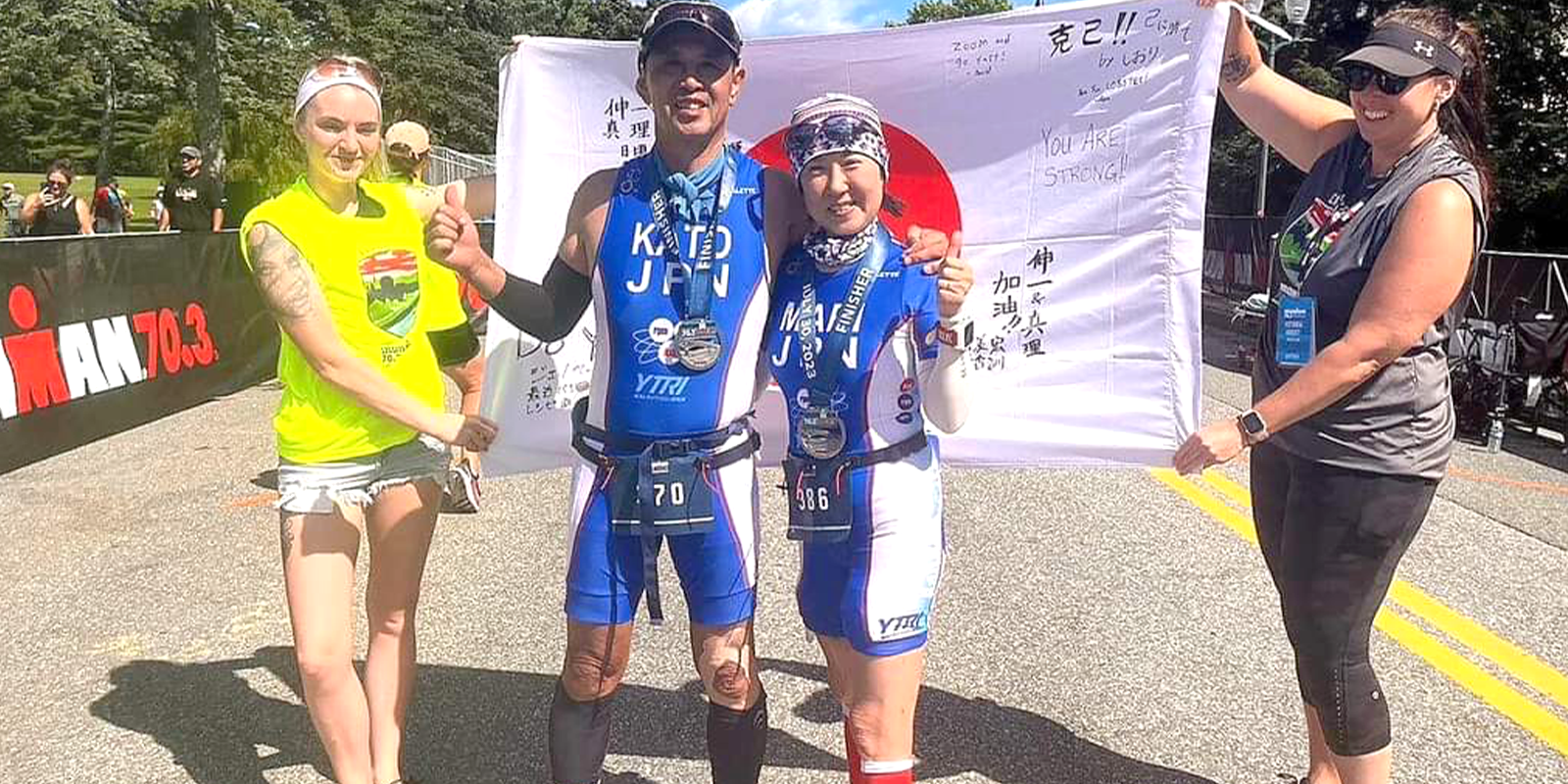 (伸一)IROMANなどのロングのトライアスロンはとにかく練習量が必要です。その練習量を捻出するのが大変で、結果として夫婦関係や家庭を崩壊させている人たちをたくさん見てきました。ですから私は、何よりも夫婦で一緒に練習することを第一優先に考えています。おかげであまりタイムに一喜一憂せず、楽しく、怪我しないことを考えて練習できるようになりました。人生の目標ができたことで健康にも気を使えるようになり、夫婦の絆も深まりましたね。特に私は50歳までは病院通い、入院を繰り返す人生を送ってきたので、こうしてトライアスロンをしていて健康であることが人一倍嬉しいです。スイム、バイク、ランの練習をすることによってバランスの良い体型になるし、食事もお酒も美味しくいただけます。それから、今年2023年もIRONMAN 70.3 Maine*を夫婦で完走できました。夫婦でIRONMANシリーズ転戦はトライアスロンセカンドライフの究極の姿であり、世界広しといえども、真似できる人はいないのでは?と勝手に思っています。(笑)