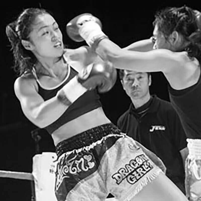 キックボクシングは個人戦。リングの上で闘うのは私ひとりなのですが、試合に至るまでの過程ではトレーナーやコーチのサポートがあり、また試合中もセコンドとして近くで見守ってくれます。そういった意味では所属ジムを代表してリング上で闘っているような、ある意味チーム戦に近い感覚ですね。サポートしてくれる方々の期待に応えたい、そして一緒に勝利を分かち合いたい、と日々練習を重ね、そしてみんなで試合に臨む。そういったことを繰り返すうち、どんどんキックボクシングの魅力にハマっていきました。