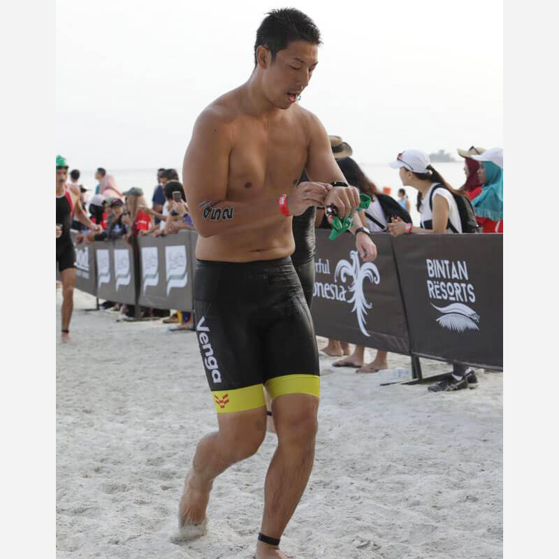 日本へ帰国してすぐ、ハワイでのレースのことを思い返しながら、リゾートトライアスロンの感覚で一年に一度ハワイのレースに出るようなライフスタイルもありかも?と考える自分がいることに気付きました。ハワイは僕の人生そのもの。あんなに苦しかったのに、また走りたい!そう思えてきたんですよね。そんなとき、ホノルルでご一緒したチームの方から、『次は8月にレースがあるけど一緒にどう??』と、また誘っていただいたんです。しかも、場所はインドネシアのビーチリゾート。もう二度とやらないと思ったホノルルトライアスロンからわずか数日後、気付いたらエントリーしちゃってました。(笑)