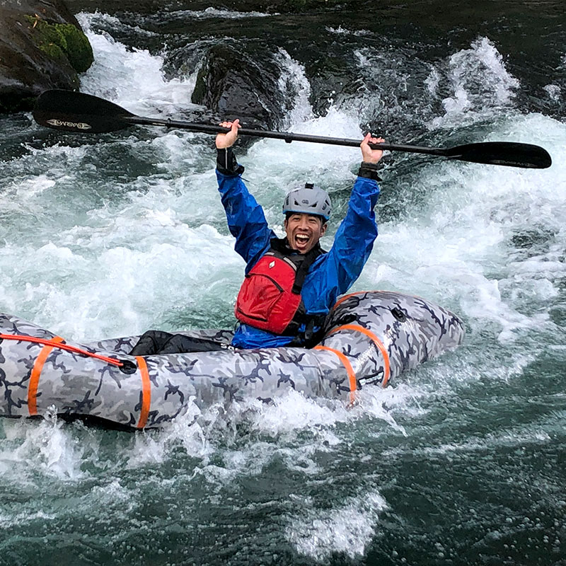 私が32歳のとき、当時営業職だったんですけどかなりのハードワークで、ある日体力の衰えを感じたんです。実は私はまったく体育会系ではないので、走るのは苦手だしジム通いも続かなくて、運動といえば休日にゴルフをするぐらいでした。このままだと体力的にしんどいし、何か運動をしなくてはと思い、そのときふと、父がよく登山に行っていたことを思い出したんです。すぐに父と連絡を取って「山に行きたいからいいところ教えて」と言うと「じゃあ一緒に行こうか!」となって、北アルプスに登りました。そうしたら、運動という意味ではもちろん、日々の仕事のストレス発散にもなって、大自然の中でのアクティビティに魅力を強く感じたんです。そこから年1回、そのうちに年2、3回くらい登山に行くようになりましたね。こうして山登りにハマってきたところに、20年来の友人である齊藤健一郎*1から一緒にアドベンチャーレースに出ないかと誘われて、二つ返事で出場を決めました。初レースは2019年に福島で開催されたエクストリームシリーズ檜枝岐大会*2でした。それをきっかけにマウンテンバイクやパックラフト、沢登りなど、いろんなことをやり出して、自然の中にこんなに面白い遊びがあったのかと、のめりこんでいきましたね。その翌年2020年には第1回NISEKO EXPEDITION(当時、ニセコアドベンチャーレース)に選手として出場しました。