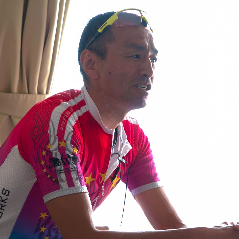 (稲田)初のIRONMANで挫折を味わった私は、人からの勧めで稲毛インターナショナルトライアスロンクラブ*の門を叩きました。実際に行くまでには、オリンピック選手がいるようなクラブに自分のような高齢者が参加するのはどうかと悩みましたが、それまで全部我流でやってきて、今まで通りのことをしてもまた同じ結果になるかもしれないと思い、一歩踏み出すことにしたんです。山本淳一さんとはこのクラブで出会いました。テレビで見たことのある有名な選手で、雲の上の人だと思っていたけど「一緒にバイク走りますか」と声をかけてくれて。面倒見よく熱心に指導してくれましたね。