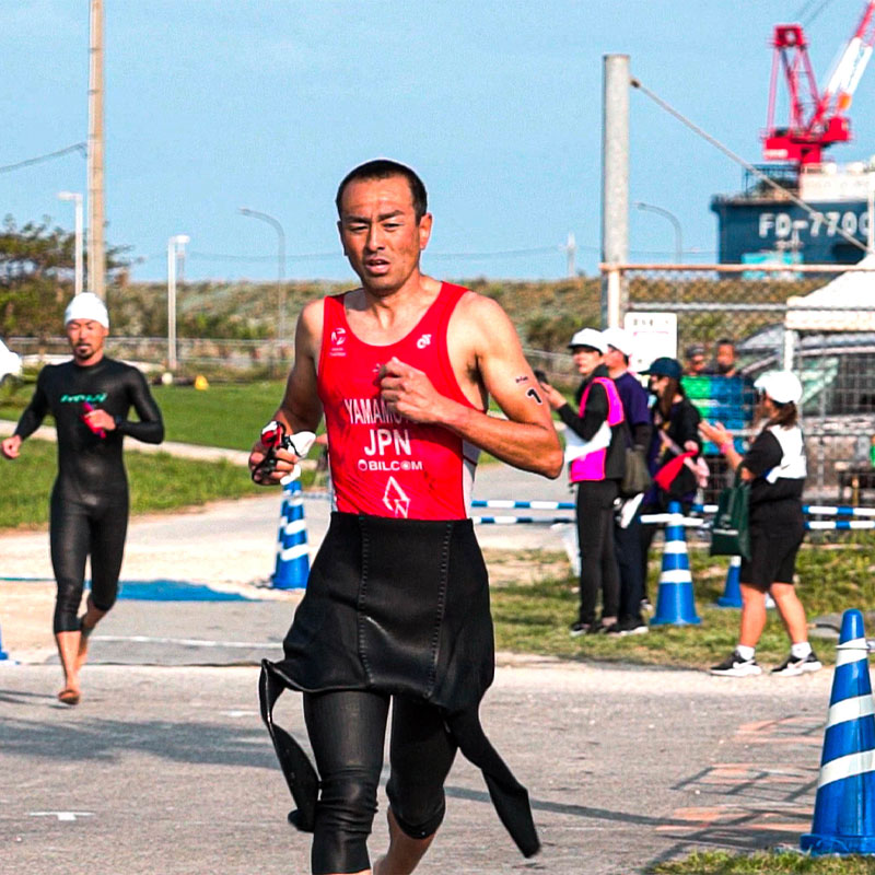 (山本)デビュー戦の結果がかなり悔しくて、大学4年生で同じ大会で優勝することと、インカレ優勝を目標にひたすら練習に打ち込みました。結果、デビュー戦と同じ大会で優勝。インカレはスイム、バイクまではトップ、最後のランで惜しくも抜かれて2位でした。インカレで優勝はできませんでしたが、世界選手権のエイジグループの日本代表に選ばれて、22歳のときに初めて世界選手権に出場したんです。その大会で日本人トップの13位という成績を収めて日本に帰って来たら、自分でもびっくりするぐらい様々な企業からプロ契約のオファーをもらいましたね。世界選手権が終わったら就職活動をしようと思っていたのが、そこでプロとしてトライアスロンをやっていくという選択肢が生まれたんです。大学卒業と同時にプロ契約を結んで、1996年からプロとして17年、その後はコーチをしたりして今に至ります。
