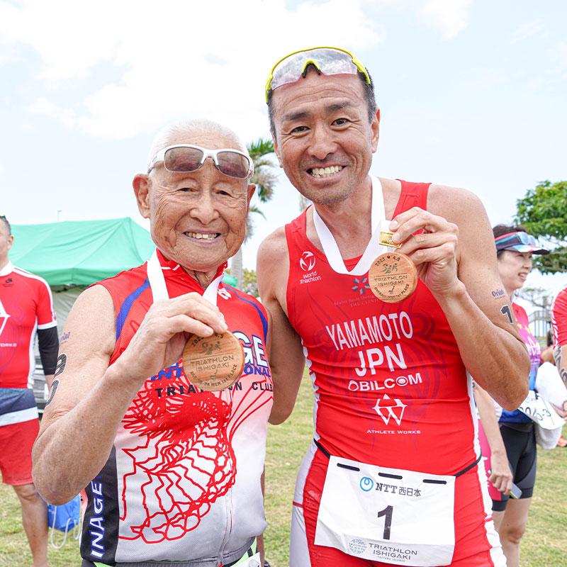 (山本)昨年、世界選手権で2度目の世界チャンピオンのタイトルを獲るという目標を達成して、今年は新たなことにもチャレンジしたいと考えています。トライアスロン歴31年目の初挑戦は、オフロード版トライアスロンと言われているエクステラに決めました。コーチとしての目標は、稲田さんをもう一度KONAの舞台に立たせたいということです。まずは今年6月のIRONMAN Cairns完走を目指し、その先のKONAも見据えていきたいですね。91歳でIRONMAN 完走はそれ相応の覚悟と、フィジカル&メンタルが必要なので、しっかりとサポートしていきたいと思います。 (稲田)目標はKONAで完走すること、できれば記録の更新をしたいですね。その前に4月の石垣島と6月のIRONMAN Cairns完走を目指します。今後どうなるか分からないけど、とにかく今できるだけのことをやろうと思っています。今年91歳になり、体力的な衰えを日々感じるんです。正直、レース中も練習中にも、なぜこんなに苦しいことをやっているんだと思うこともありますよ。でも、2015年のKONAのことを思い出すと頑張れるんです。この年のKONAは制限時間が16時間50分で、いつもより10分短かった。何度も転倒しながらやっとゴールしたけれど、制限時間をわずか5秒オーバーして完走と認められませんでした。でもこのシーンを見た世界中の人から激励のメッセージが届いて、応援してくれている人たちの期待に応えたいという気持ちが心の底から湧いてきました。それが今でもモチベーションとして残っています。山本さんも他の仲間も、会ったことのない人も、私を応援し、支えてくれている。それによって自分はトライアスロンを続けさせてもらっているんです。やればなんでもできる、やらなければなんにもできない。当たり前のことだけど、本当にこれに尽きると思いますね。